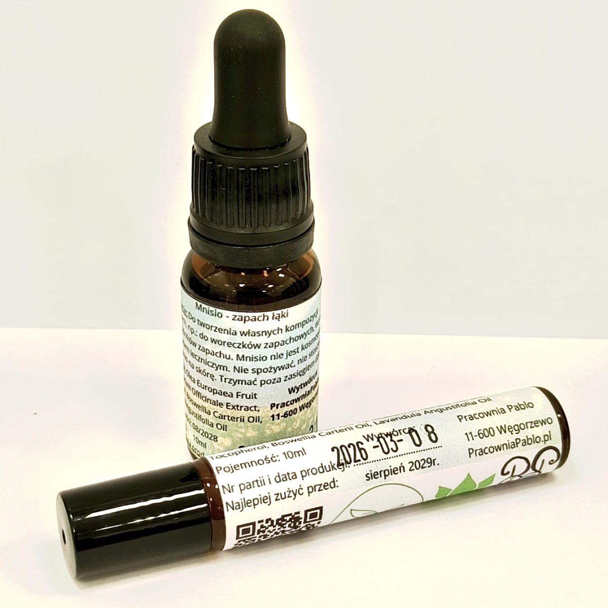 Mnisio to starannie przygotowana, naturalna kompozycja aromatyczna zamknięta w poręcznym roll-onie lub w buteleczce z pipetą szklaną – gotowe do stosowania w przestrzeni osobistej: