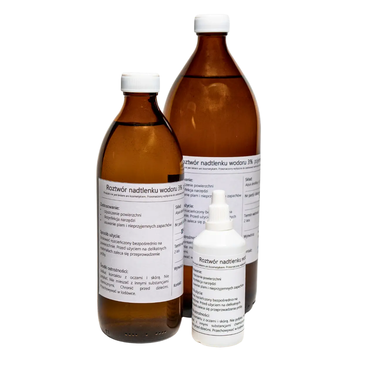 Roztwór nadtlenku wodoru o stężeniu 3%, przygotowany na bazie wody destylowanej. Przeznaczony do zastosowań technicznych i pomocniczych w gospodarstwie domowym, edukacji oraz pracach porządkowych.