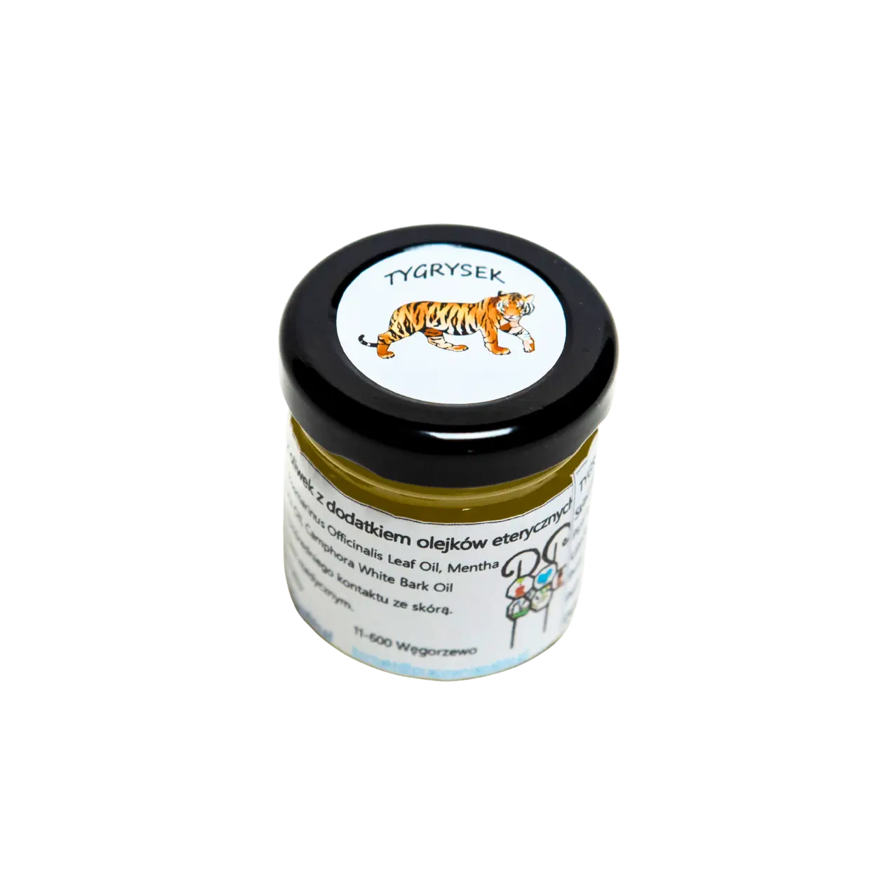 Tygrysek to rzemieślnicza mieszanka zapachowa, powstała na bazie naturalnych składników – wosku pszczelego, oliwy z oliwek, mentolu krystalicznego i starannie dobranych olejków eterycznych. Połączenie olejku golteriowego (wintergreen), rozmarynowego, miętowego, goździkowego, eukaliptusowego, lawendowego i kamforowego tworzy intensywny, ziołowo-korzenny aromat, który pobudza zmysły i wypełnia przestrzeń wyrazistą nutą natury.